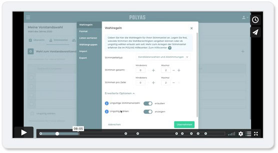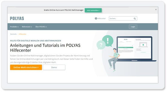 Mit unserem kostenlosen Online-Kurs führen Sie Ihre Vereinswahlen richtig durch! Steigen Sie on-demand jederzeit in den Kurs ein oder stellen Sie im wöchentlichen Live-Kurs Ihre Fragen an unsere POLYAS Wahlexperten. Jetzt am Online-Kurs teilnehmen!