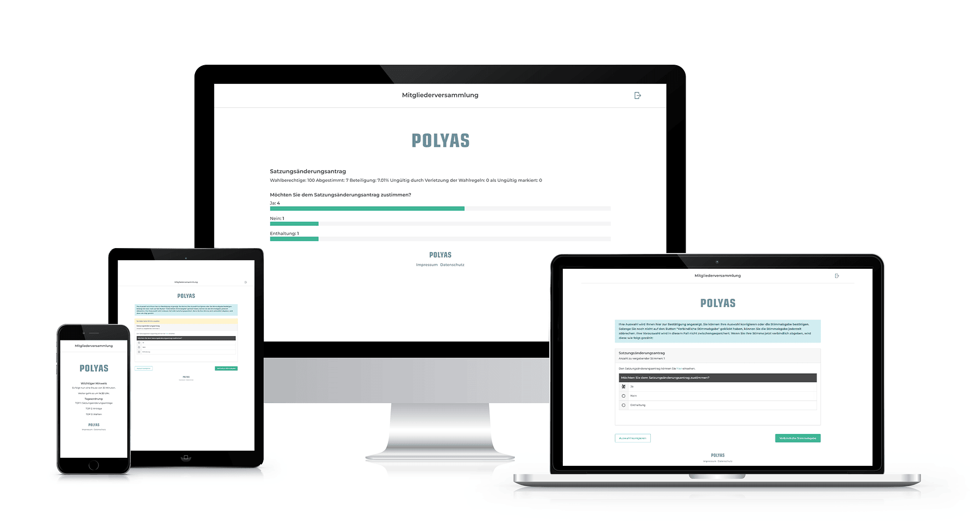 Alle Stimmberechtigten eines Vereins zu erreichen ist schwer, da die Mitglieder oftmals über das ganze Bundesgebiet verteilt wohnen. Dank des POLYAS Live Votings können Sie Ihre Stimmberechtigten überall erreichen, denn die Stimmen können orts- und zeitunabhängig abgegeben werden. Kein Mitglied muss somit bei der Vereinsversammlung vor Ort teilnehmen.